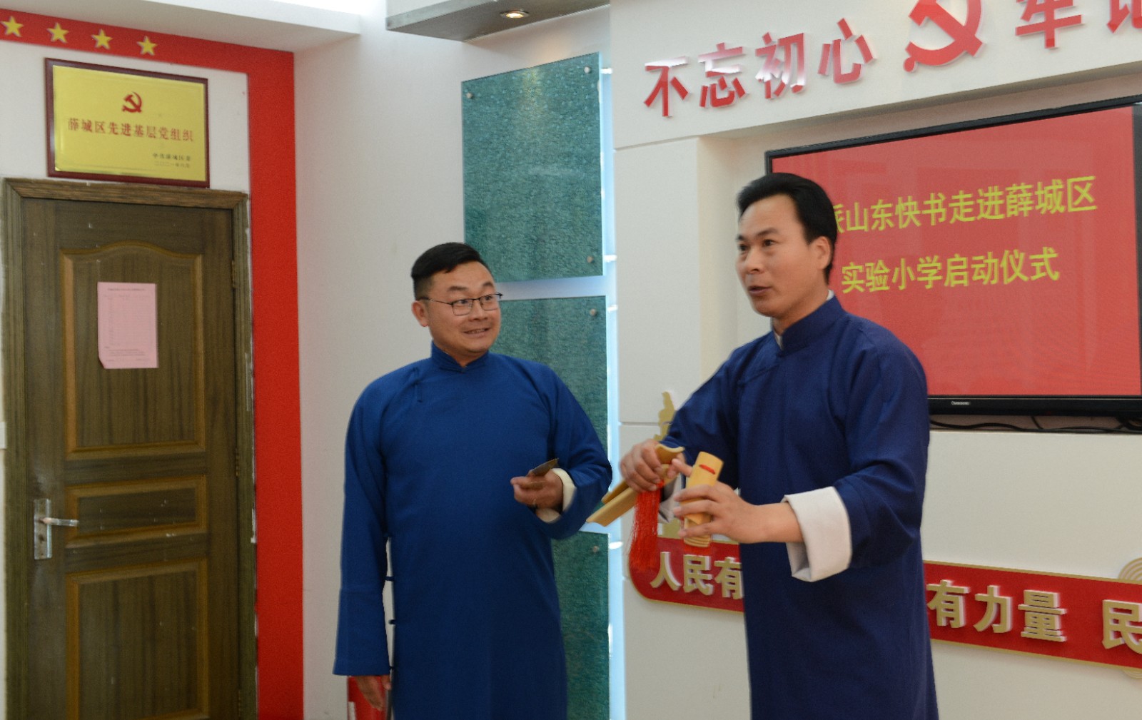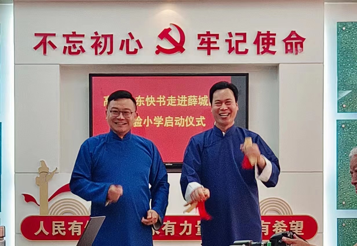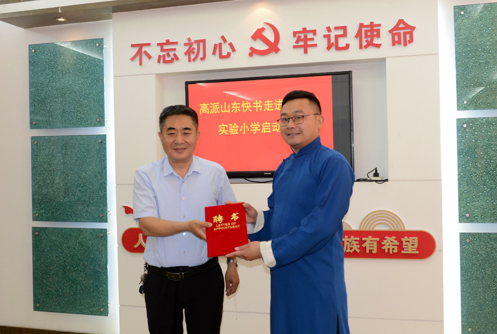 此次活动邀请了高派山东快书的传承人秦政老师,采取现场授课的方式,让广大师生近距离体验、感受、学习山东快书。 活动中,秦政和蒋广盖老师精彩的快书表演为校园师生们展现了非物质文化遗产的艺术魅力。