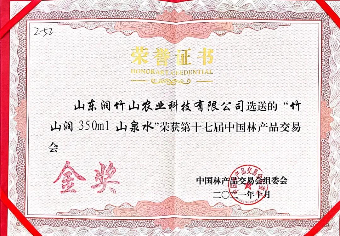 诸城“竹山润山泉水”荣获第十七届中国林产品交易会金奖